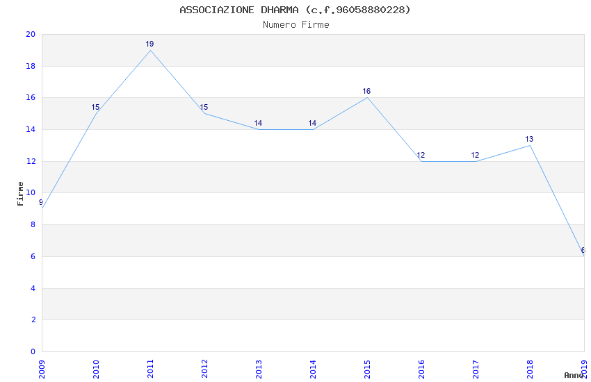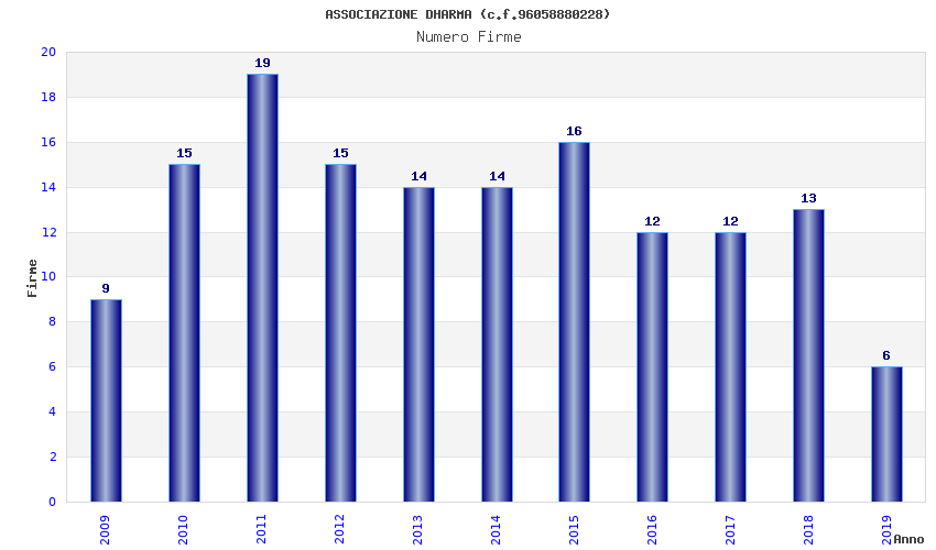 | Anno | Firme | Importi | Media | Naz. | Reg. | Prov. | Comu. |