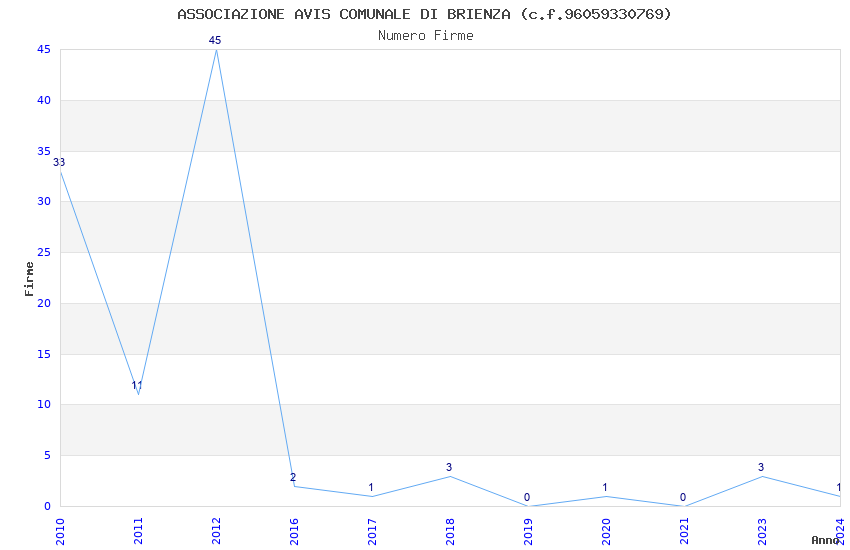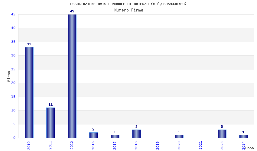 | Anno | Firme | Importi | Media | Naz. | Reg. | Prov. | Comu. |