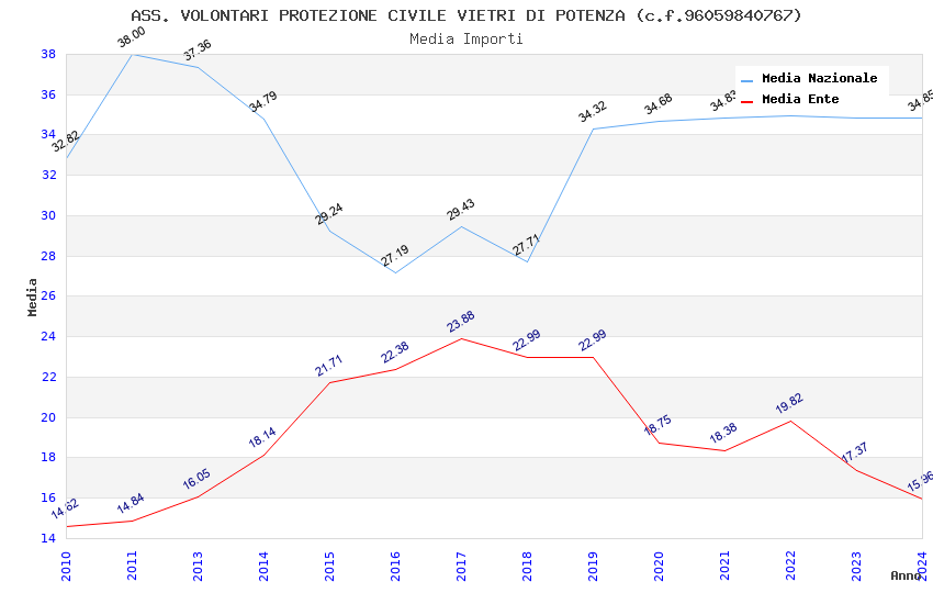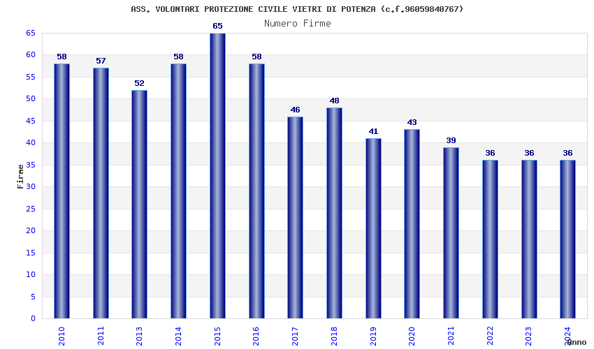 | Anno | Firme | Importi | Media | Naz. | Reg. | Prov. | Comu. |