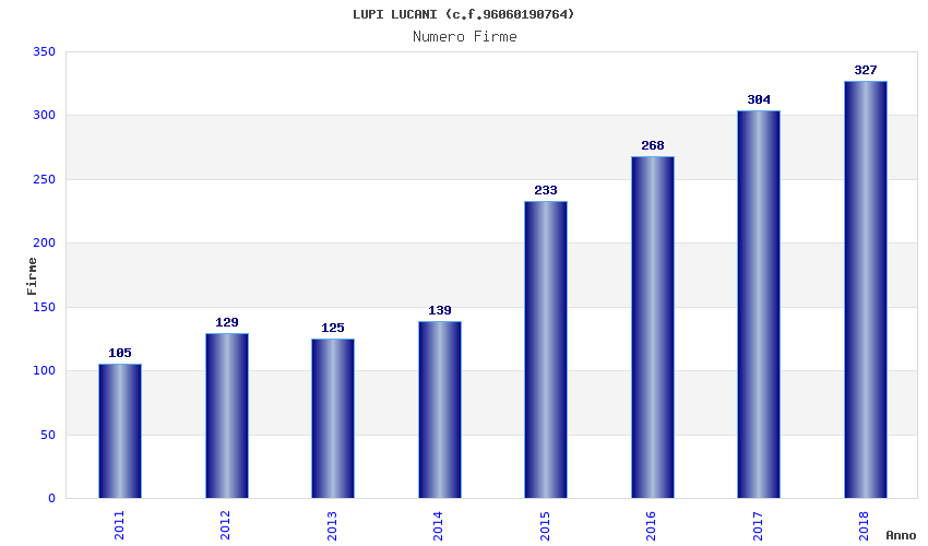 | Anno | Firme | Importi | Media | Naz. | Reg. | Prov. | Comu. |