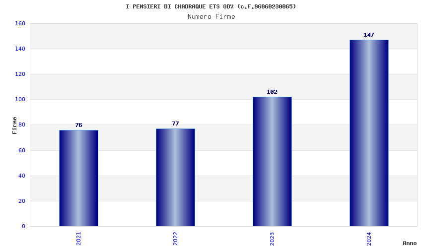 | Anno | Firme | Importi | Media | Naz. | Reg. | Prov. | Comu. |