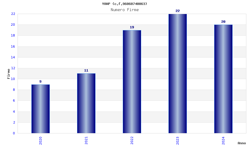 | Anno | Firme | Importi | Media | Naz. | Reg. | Prov. | Comu. |