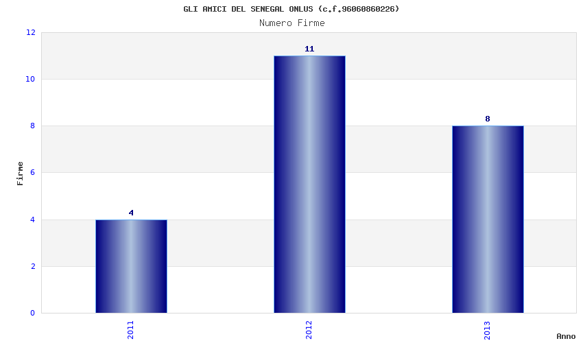 | Anno | Firme | Importi | Media | Naz. | Reg. | Prov. | Comu. |