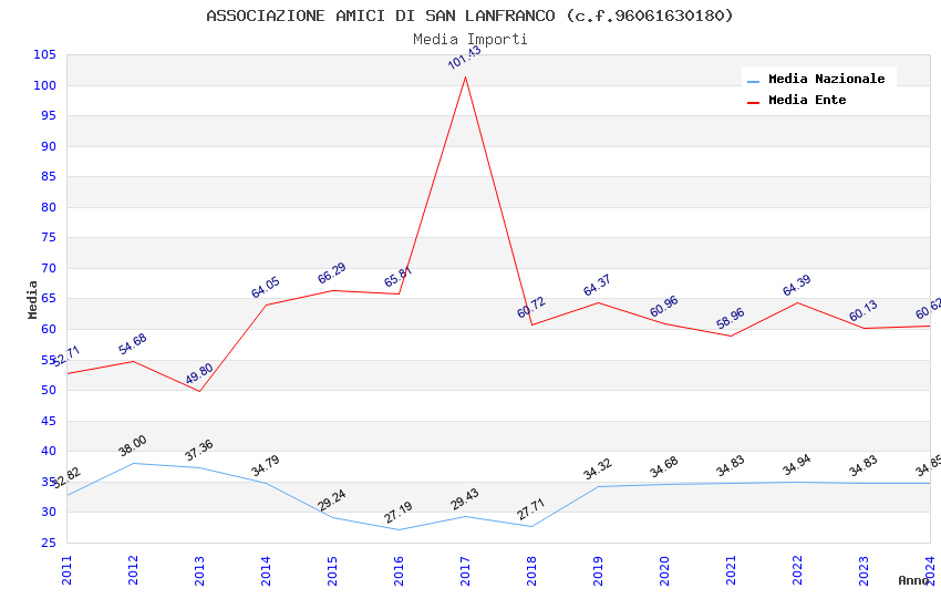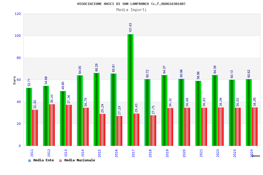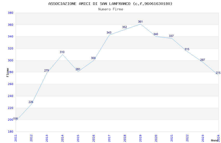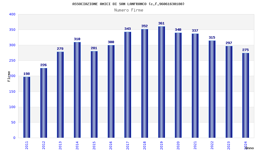 | Anno | Firme | Importi | Media | Naz. | Reg. | Prov. | Comu. |