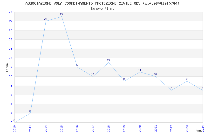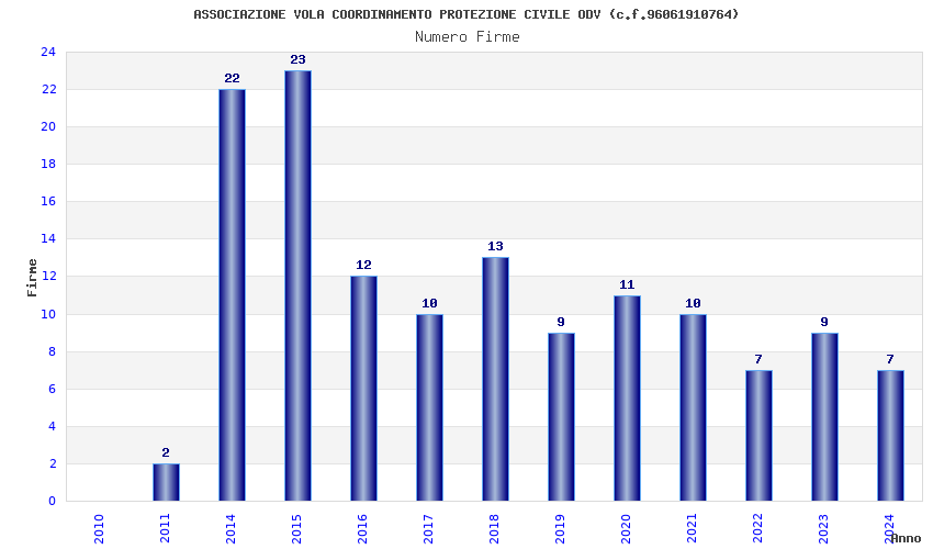 | Anno | Firme | Importi | Media | Naz. | Reg. | Prov. | Comu. |