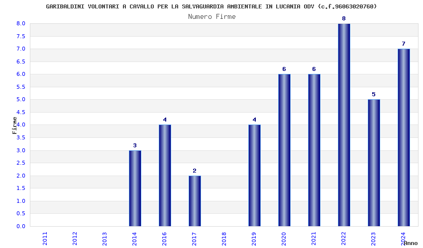 | Anno | Firme | Importi | Media | Naz. | Reg. | Prov. | Comu. |