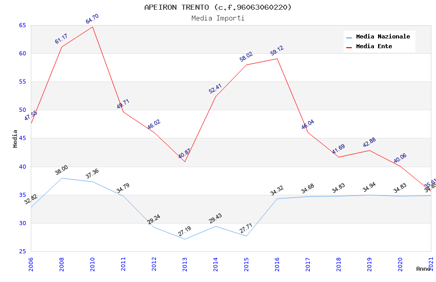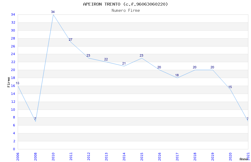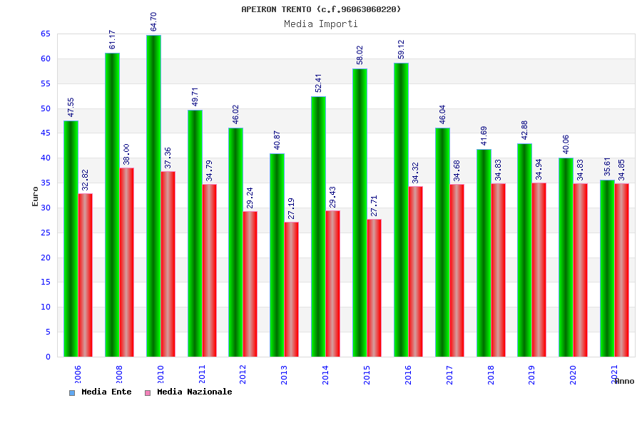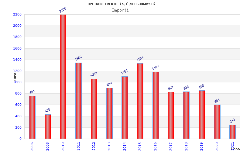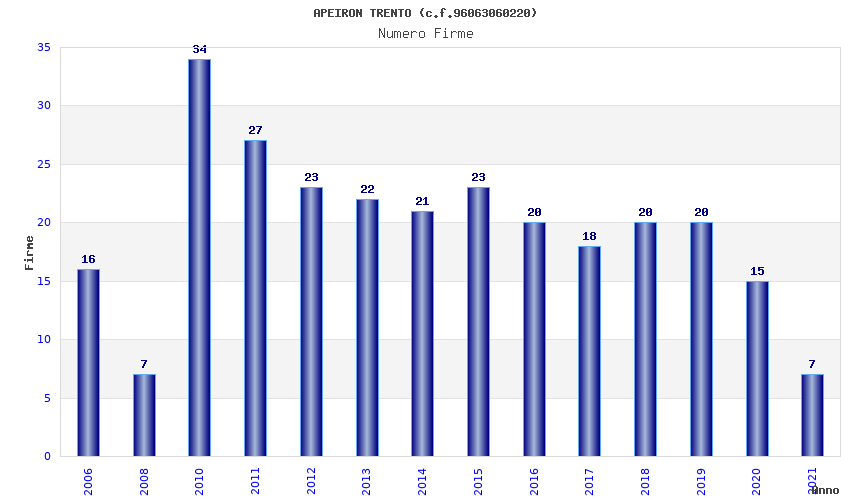 | Anno | Firme | Importi | Media | Naz. | Reg. | Prov. | Comu. |