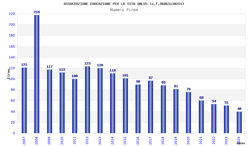 | Anno | Firme | Importi | Media | Naz. | Reg. | Prov. | Comu. |
