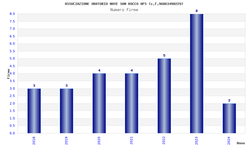 | Anno | Firme | Importi | Media | Naz. | Reg. | Prov. | Comu. |