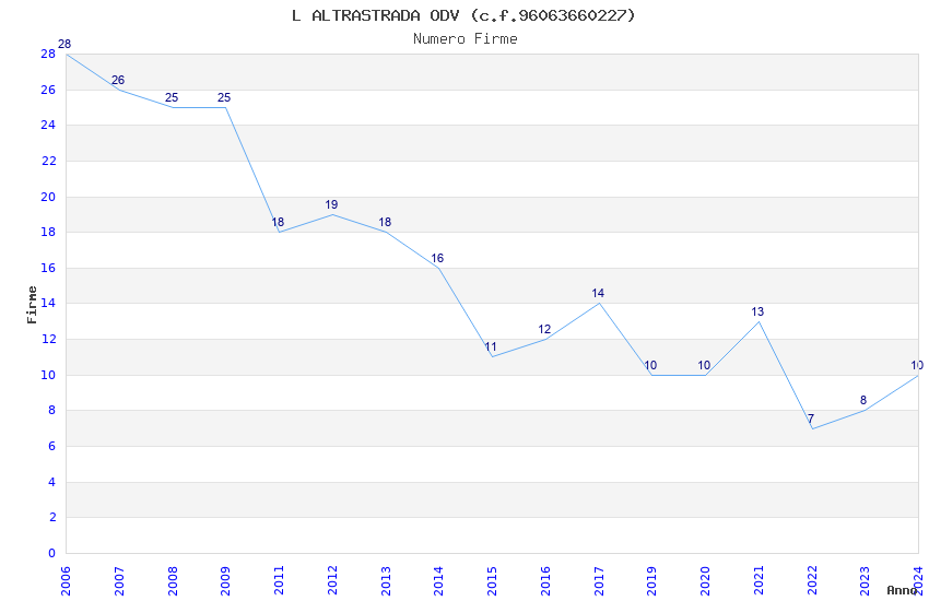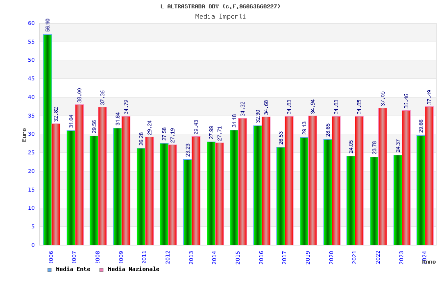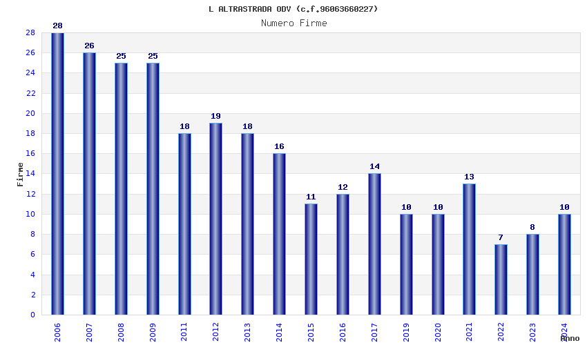 | Anno | Firme | Importi | Media | Naz. | Reg. | Prov. | Comu. |