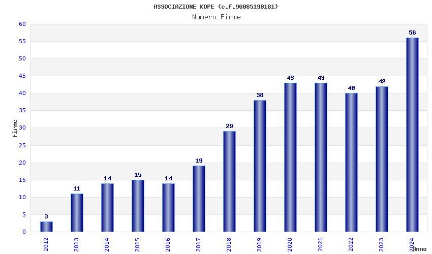 | Anno | Firme | Importi | Media | Naz. | Reg. | Prov. | Comu. |