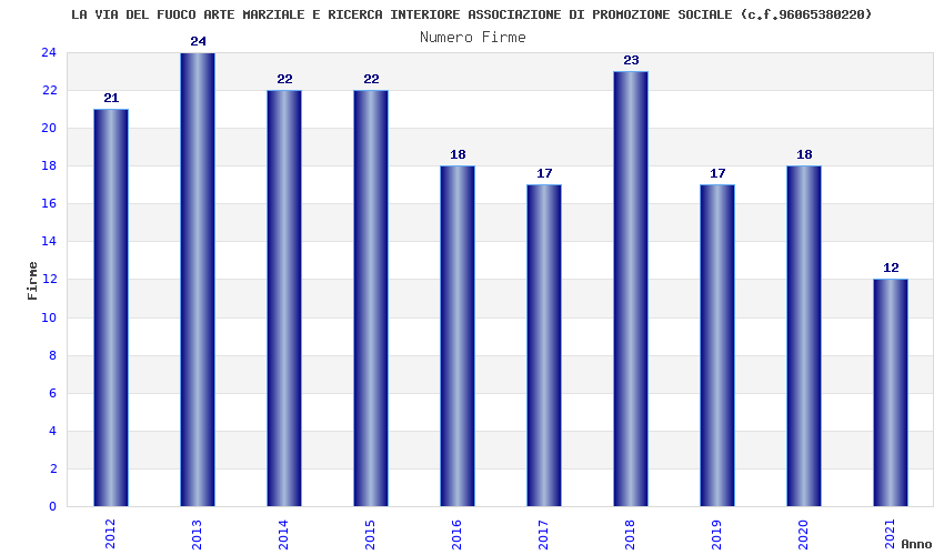 | Anno | Firme | Importi | Media | Naz. | Reg. | Prov. | Comu. |