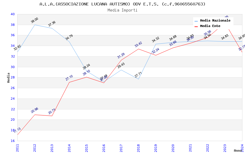| Anno | Firme | Importi | Media | Naz. | Reg. | Prov. | Comu. |