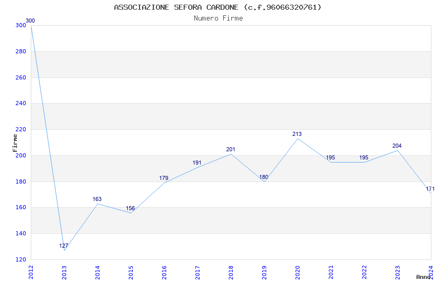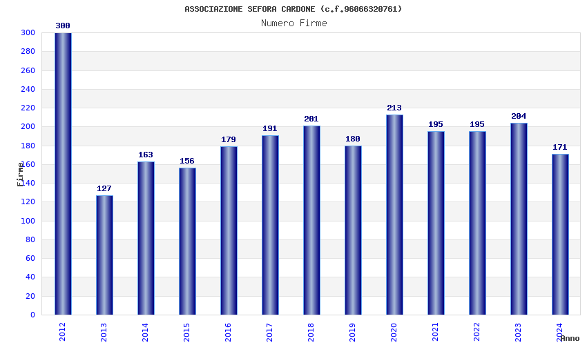 | 2024 | 171 | 4.596,89 | 26,88 | 11.705 | 87 | 63 | 23 |