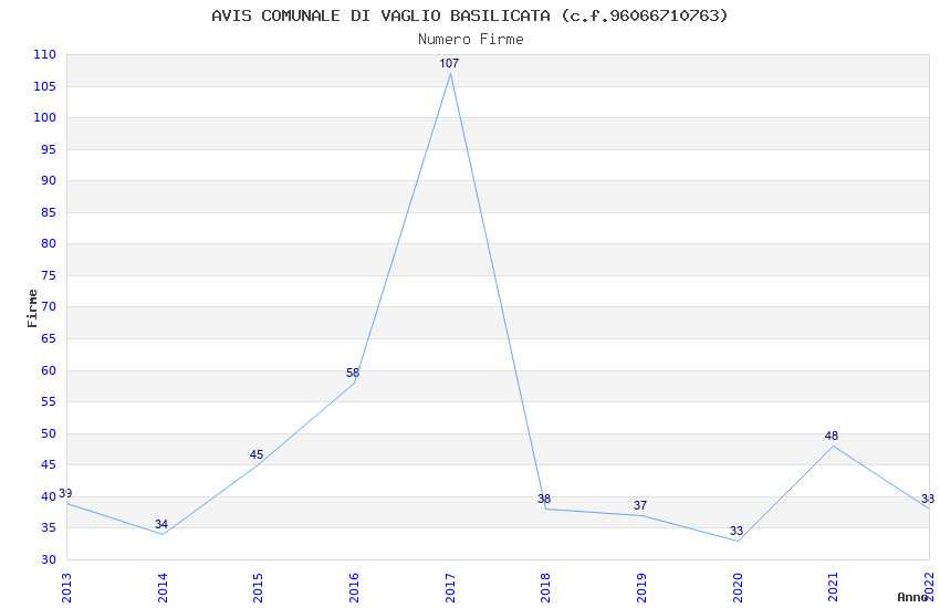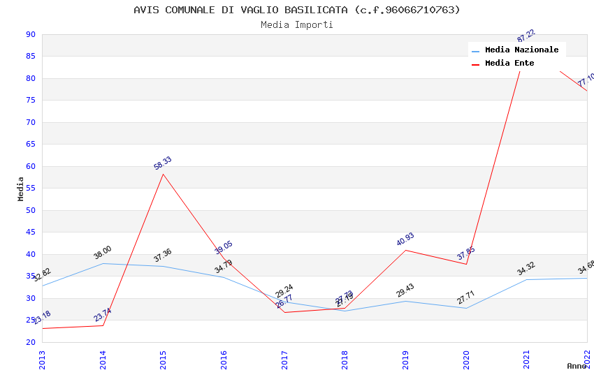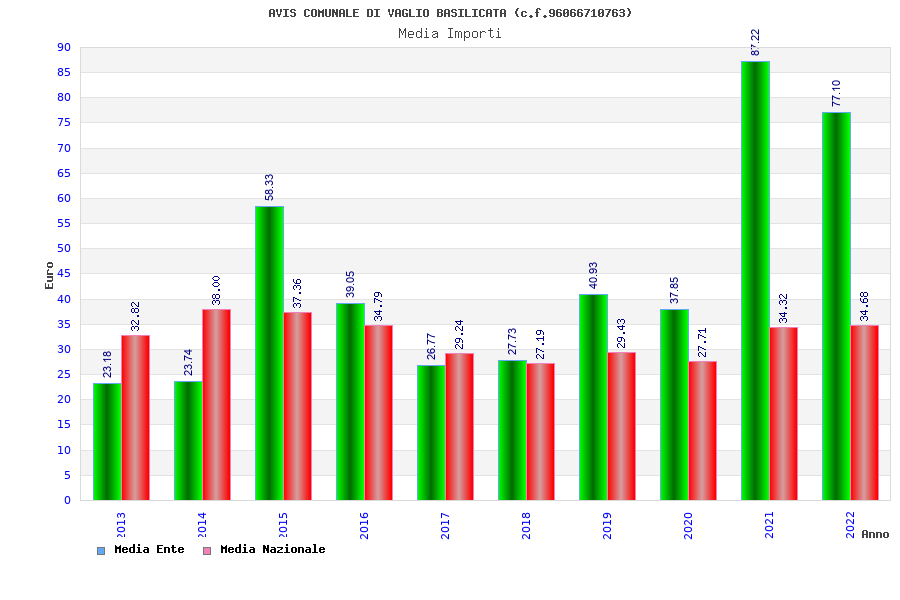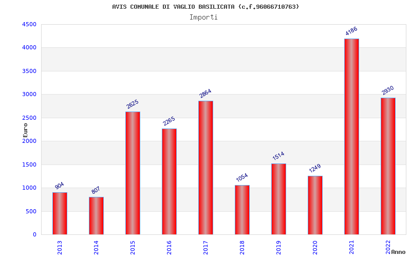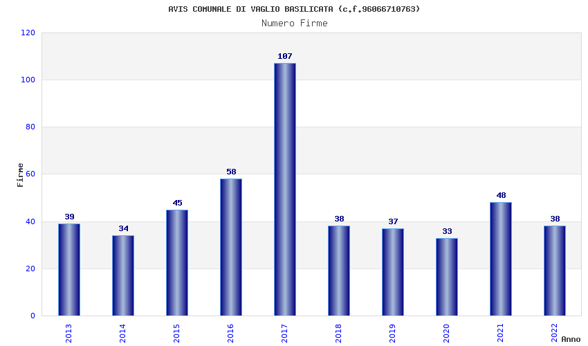 | Anno | Firme | Importi | Media | Naz. | Reg. | Prov. | Comu. |