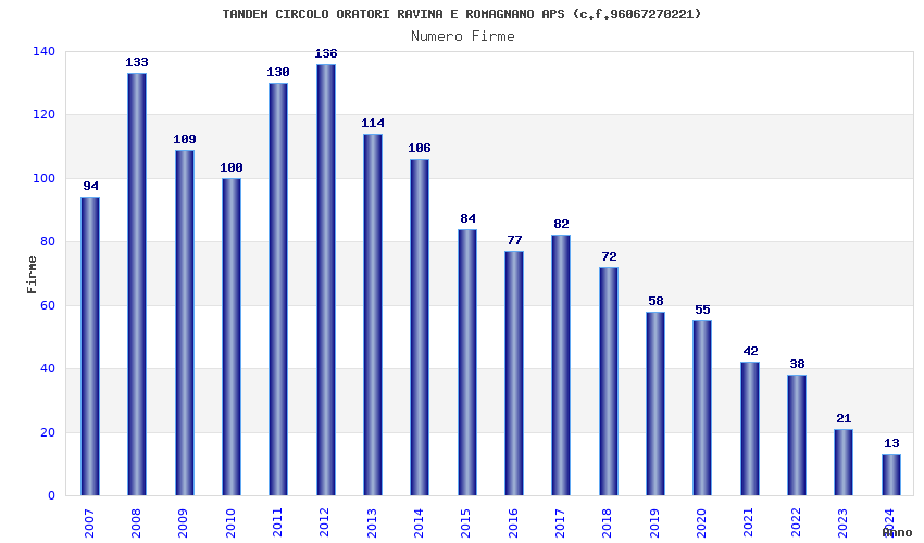 | Anno | Firme | Importi | Media | Naz. | Reg. | Prov. | Comu. |