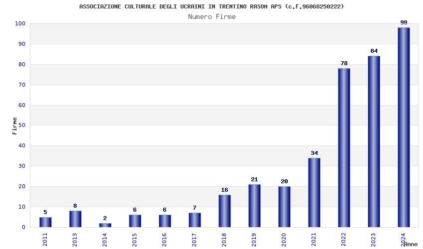 | Anno | Firme | Importi | Media | Naz. | Reg. | Prov. | Comu. |