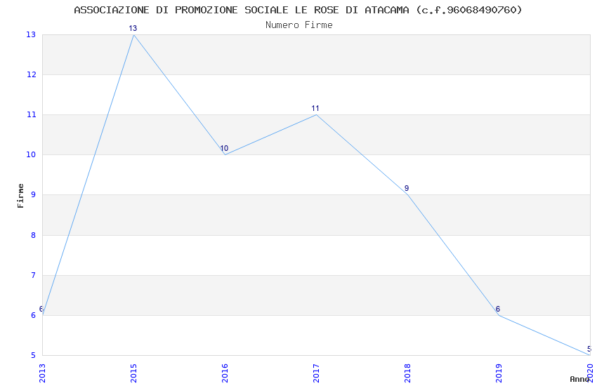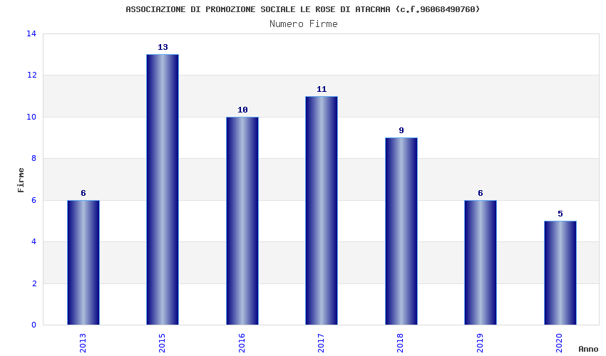 | Anno | Firme | Importi | Media | Naz. | Reg. | Prov. | Comu. |