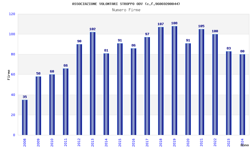 | Anno | Firme | Importi | Media | Naz. | Reg. | Prov. | Comu. |