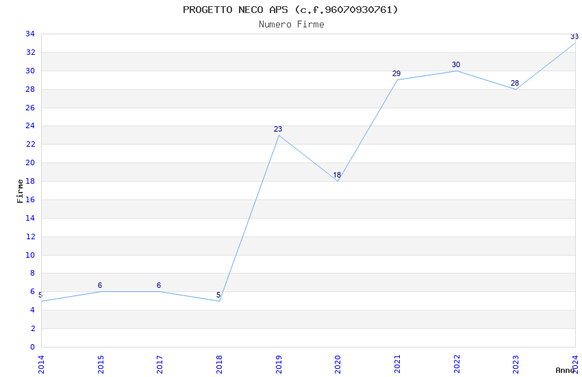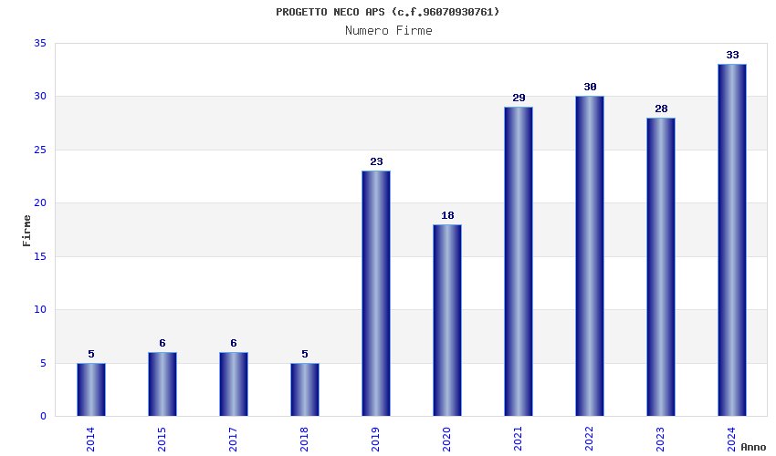 | Anno | Firme | Importi | Media | Naz. | Reg. | Prov. | Comu. |