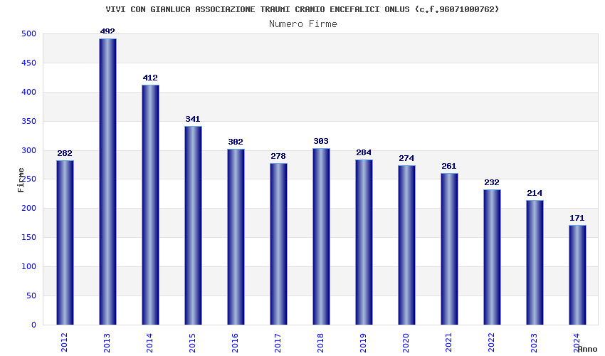 | Anno | Firme | Importi | Media | Naz. | Reg. | Prov. | Comu. |
