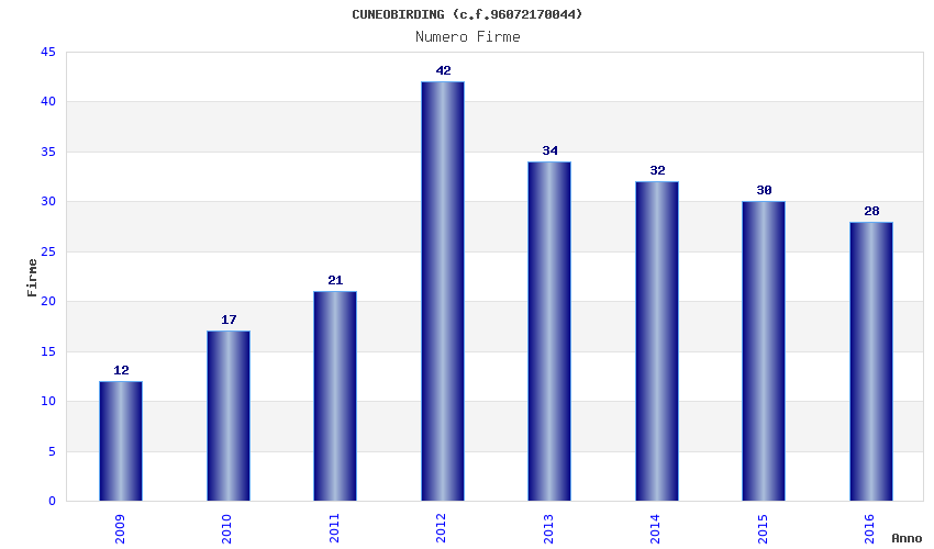 | Anno | Firme | Importi | Media | Naz. | Reg. | Prov. | Comu. |