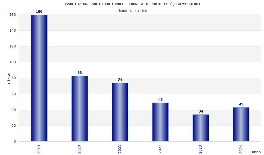 | Anno | Firme | Importi | Media | Naz. | Reg. | Prov. | Comu. |