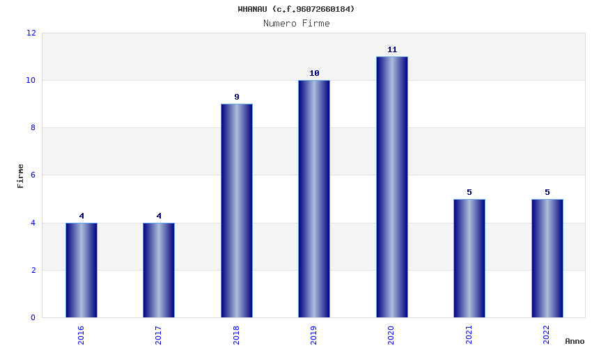 | Anno | Firme | Importi | Media | Naz. | Reg. | Prov. | Comu. |