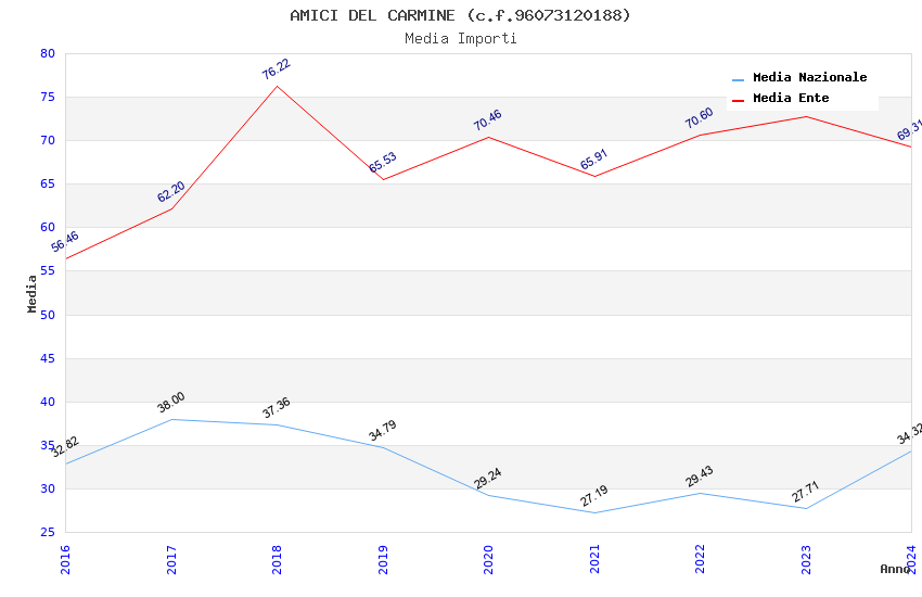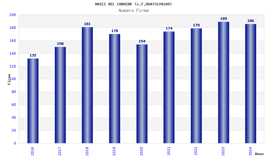 | Anno | Firme | Importi | Media | Naz. | Reg. | Prov. | Comu. |