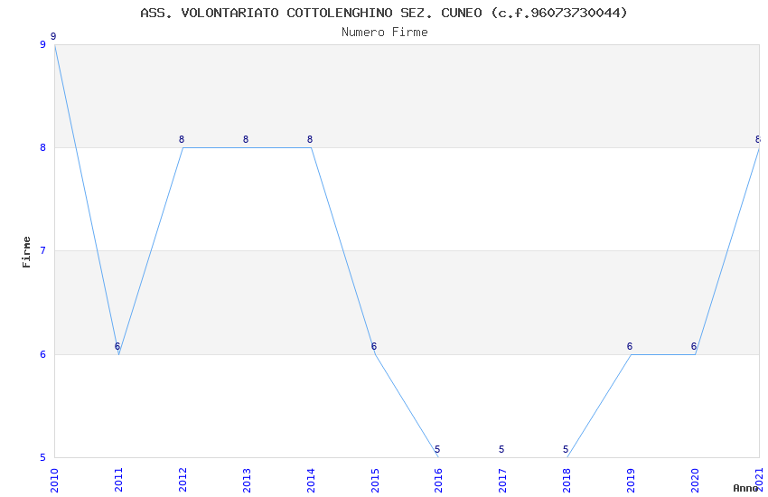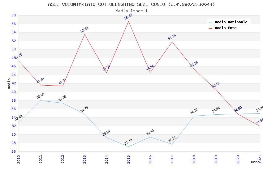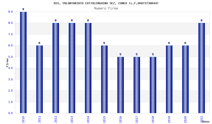 | Anno | Firme | Importi | Media | Naz. | Reg. | Prov. | Comu. |