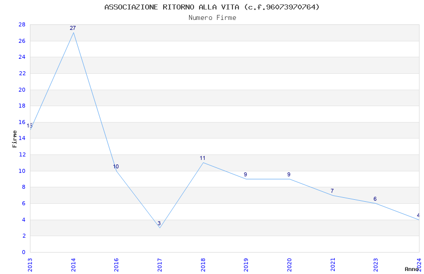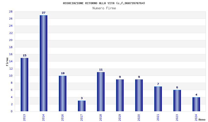 | Anno | Firme | Importi | Media | Naz. | Reg. | Prov. | Comu. |