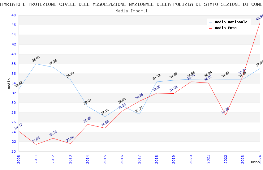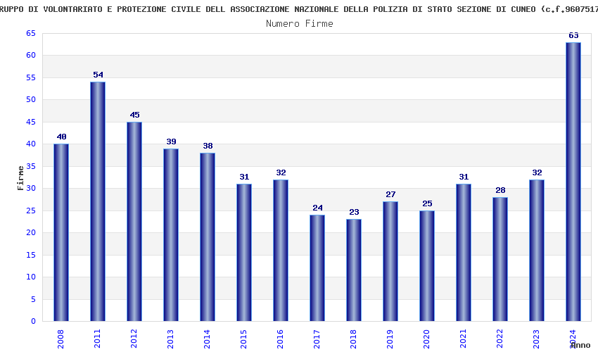 | Anno | Firme | Importi | Media | Naz. | Reg. | Prov. | Comu. |