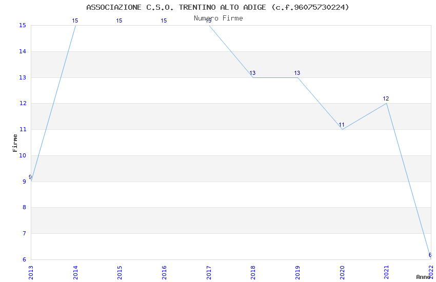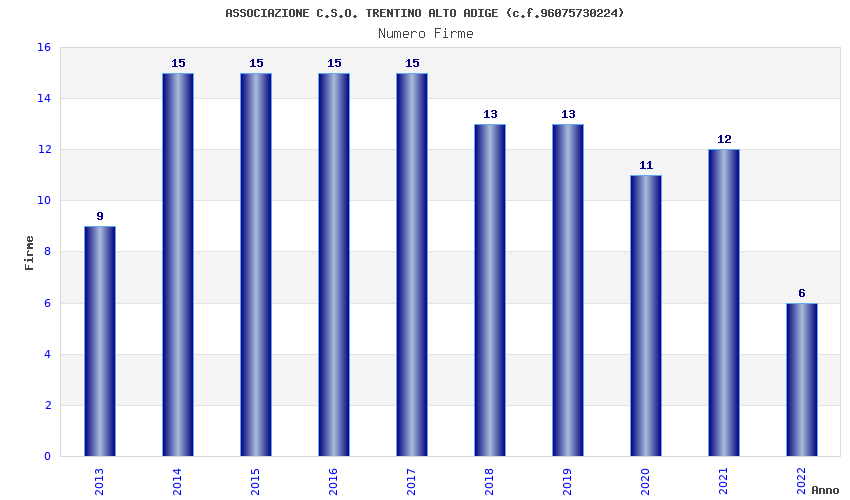 | Anno | Firme | Importi | Media | Naz. | Reg. | Prov. | Comu. |