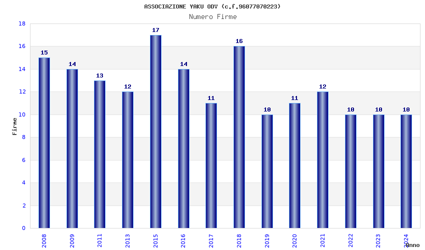 | Anno | Firme | Importi | Media | Naz. | Reg. | Prov. | Comu. |