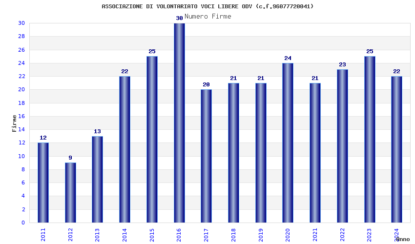 | Anno | Firme | Importi | Media | Naz. | Reg. | Prov. | Comu. |