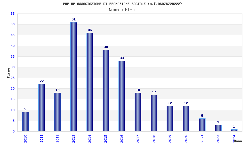 | Anno | Firme | Importi | Media | Naz. | Reg. | Prov. | Comu. |