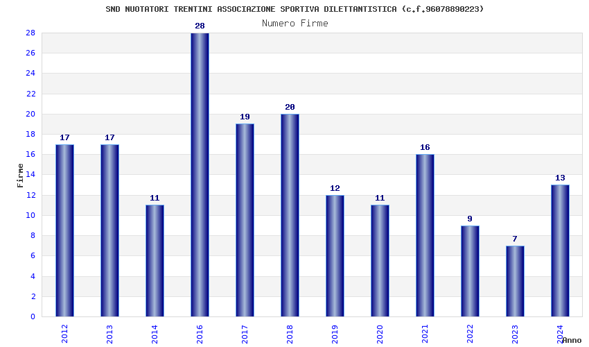 | Anno | Firme | Importi | Media | Naz. | Reg. | Prov. | Comu. |