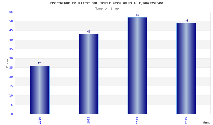 | Anno | Firme | Importi | Media | Naz. | Reg. | Prov. | Comu. |