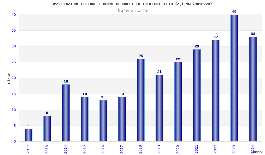 | Anno | Firme | Importi | Media | Naz. | Reg. | Prov. | Comu. |