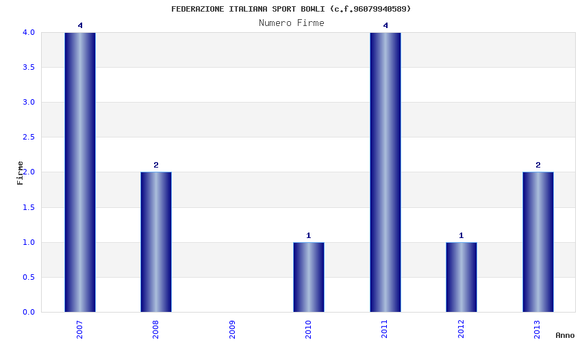 | Anno | Firme | Importi | Media | Naz. | Reg. | Prov. | Comu. |