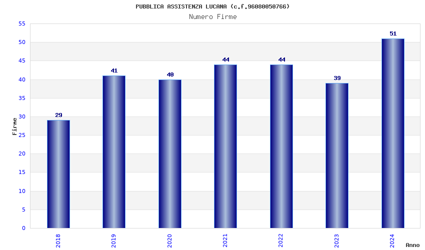 | Anno | Firme | Importi | Media | Naz. | Reg. | Prov. | Comu. |
