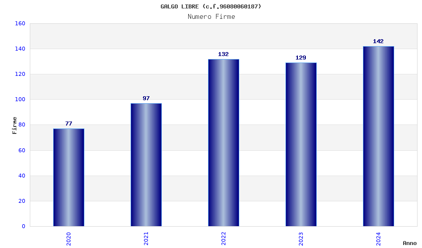 | Anno | Firme | Importi | Media | Naz. | Reg. | Prov. | Comu. |