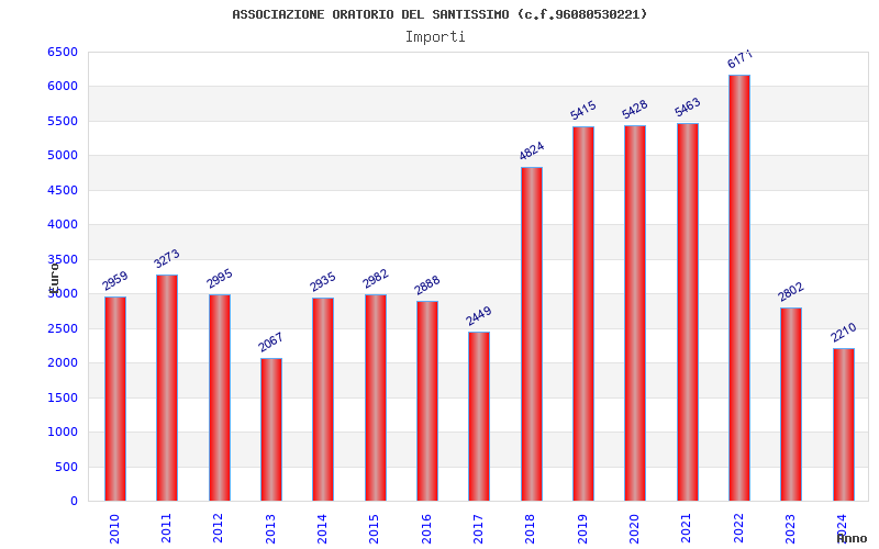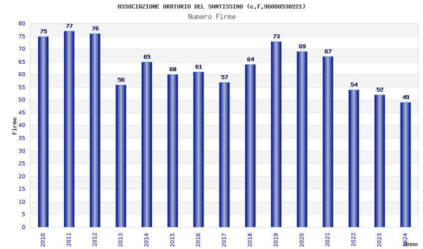 | Anno | Firme | Importi | Media | Naz. | Reg. | Prov. | Comu. |