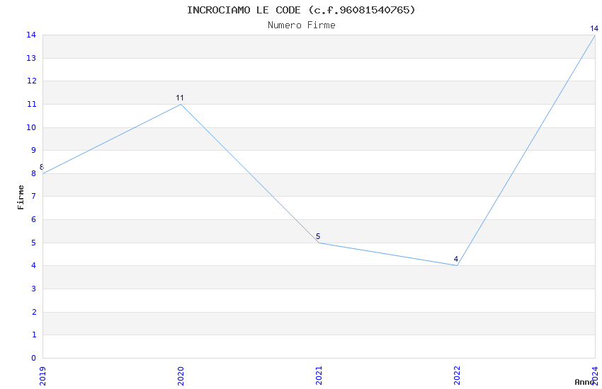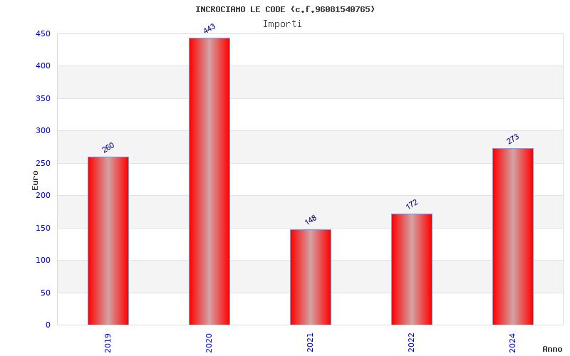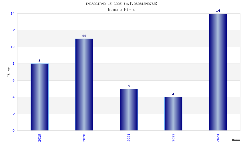 | Anno | Firme | Importi | Media | Naz. | Reg. | Prov. | Comu. |