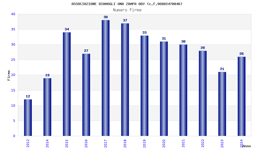 | Anno | Firme | Importi | Media | Naz. | Reg. | Prov. | Comu. |