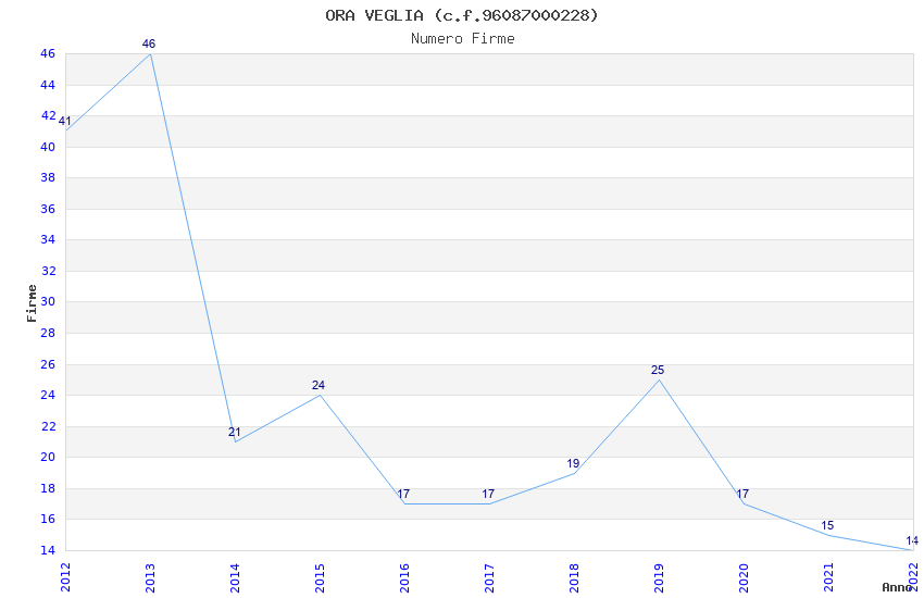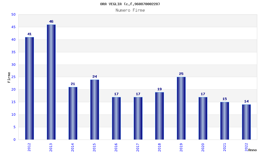 | Anno | Firme | Importi | Media | Naz. | Reg. | Prov. | Comu. |