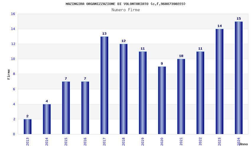 | Anno | Firme | Importi | Media | Naz. | Reg. | Prov. | Comu. |