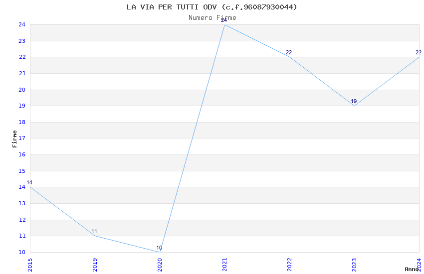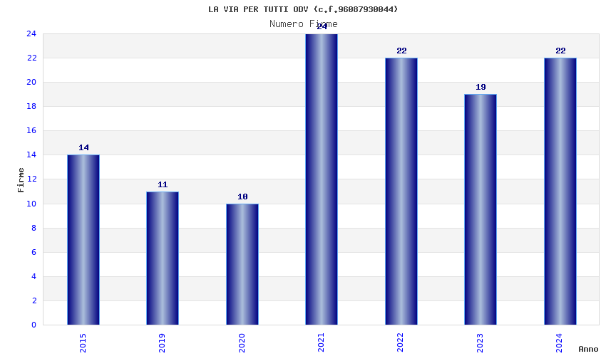| Anno | Firme | Importi | Media | Naz. | Reg. | Prov. | Comu. |