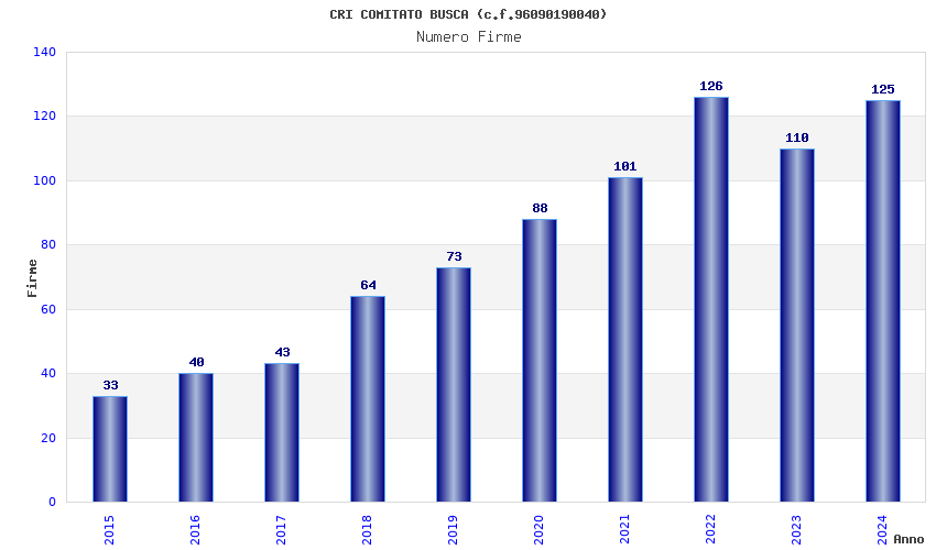 | Anno | Firme | Importi | Media | Naz. | Reg. | Prov. | Comu. |