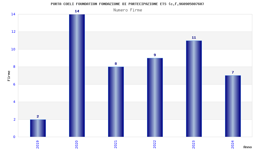 | Anno | Firme | Importi | Media | Naz. | Reg. | Prov. | Comu. |